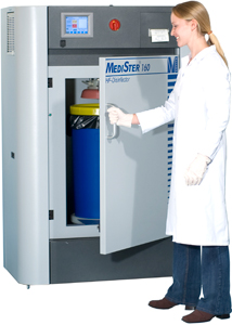 Με την πλήρωση του κάδου ο κάδος οδηγείται κλειστός μέσα στο θάλαμο αποστείρωσης του μηχανήματος